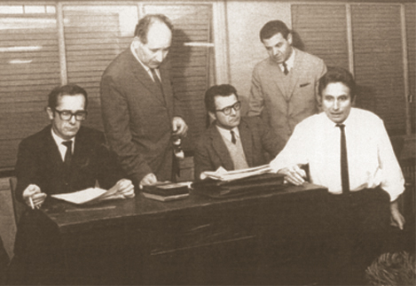 Rodolfo Walsh, Enrique Coronel, José Vázquez, Ricardo de Luca y Raimundo Ongaro. Los principales orientadores del periódico en una conferencia de prensa en Paseo Colón